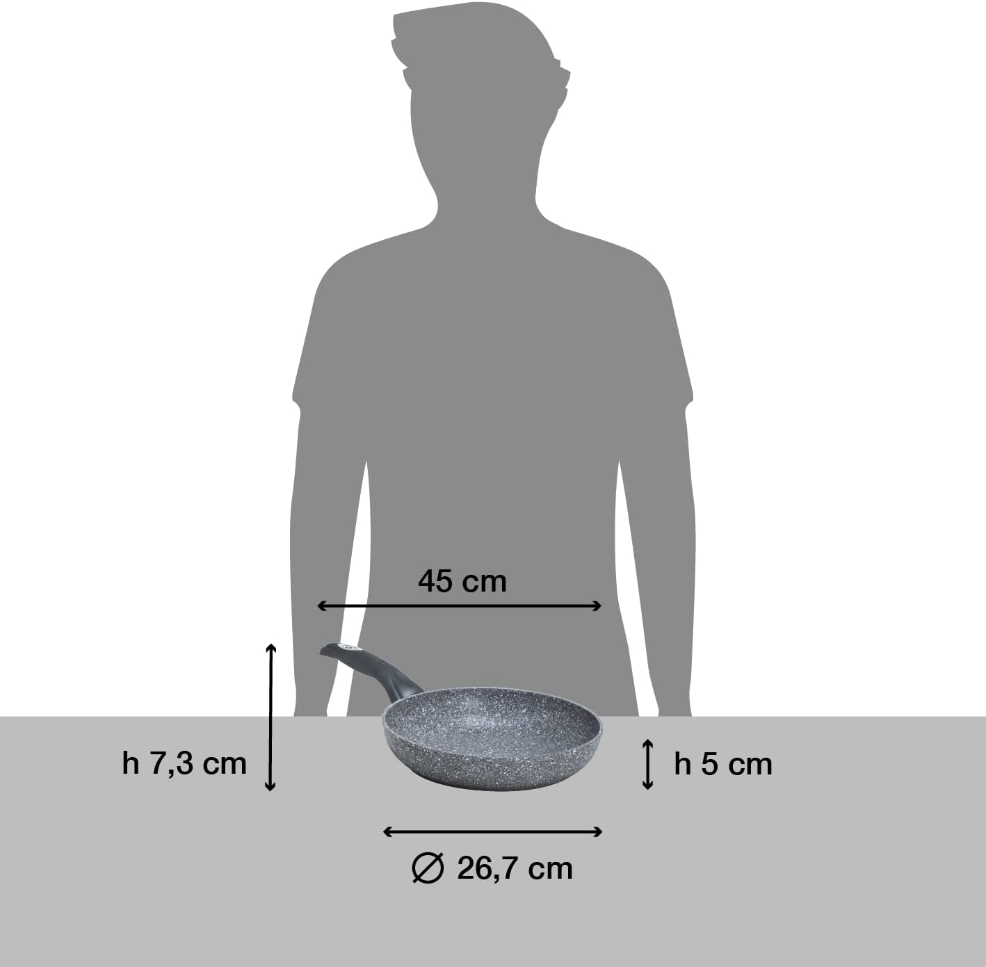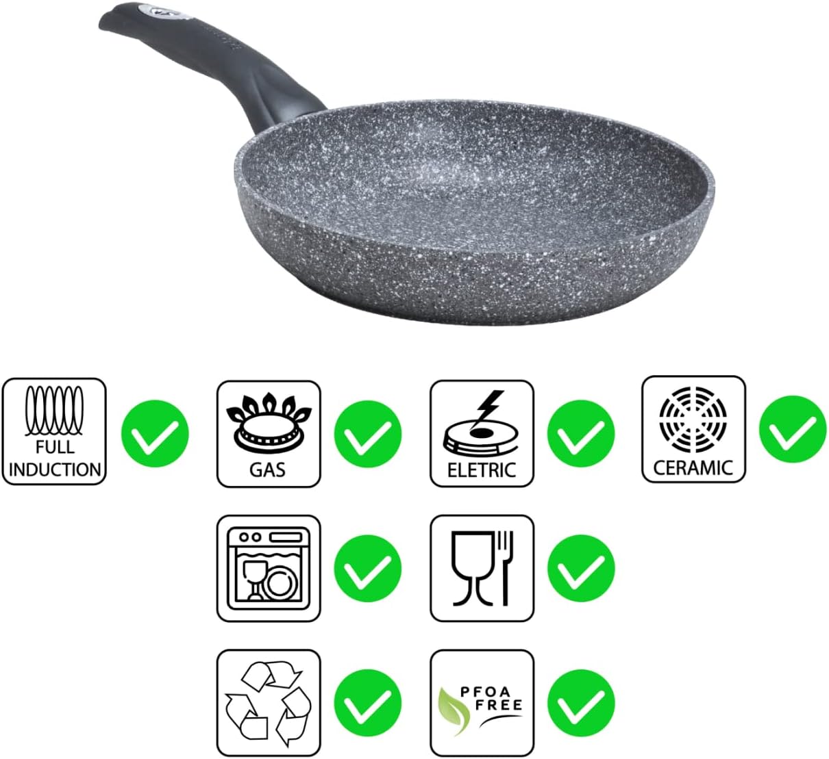 - [CARATTERISTICHE TECNICHE]: Realizzate con un corpo in alluminio ad elevato spessore che garantisce performace di cottura eccellenti; Il rivestimento antiaderente è particolarmente resistente e assicura una lunga durata; la presenza di microparticelle di pietra permette una cottura nauturale, sana e priva di olii e grassi aggiunti; Grazie al manigliame ergonomico in bachelite con finitura soft, l'utilizzo risulta pratico e la presa salda e sicura