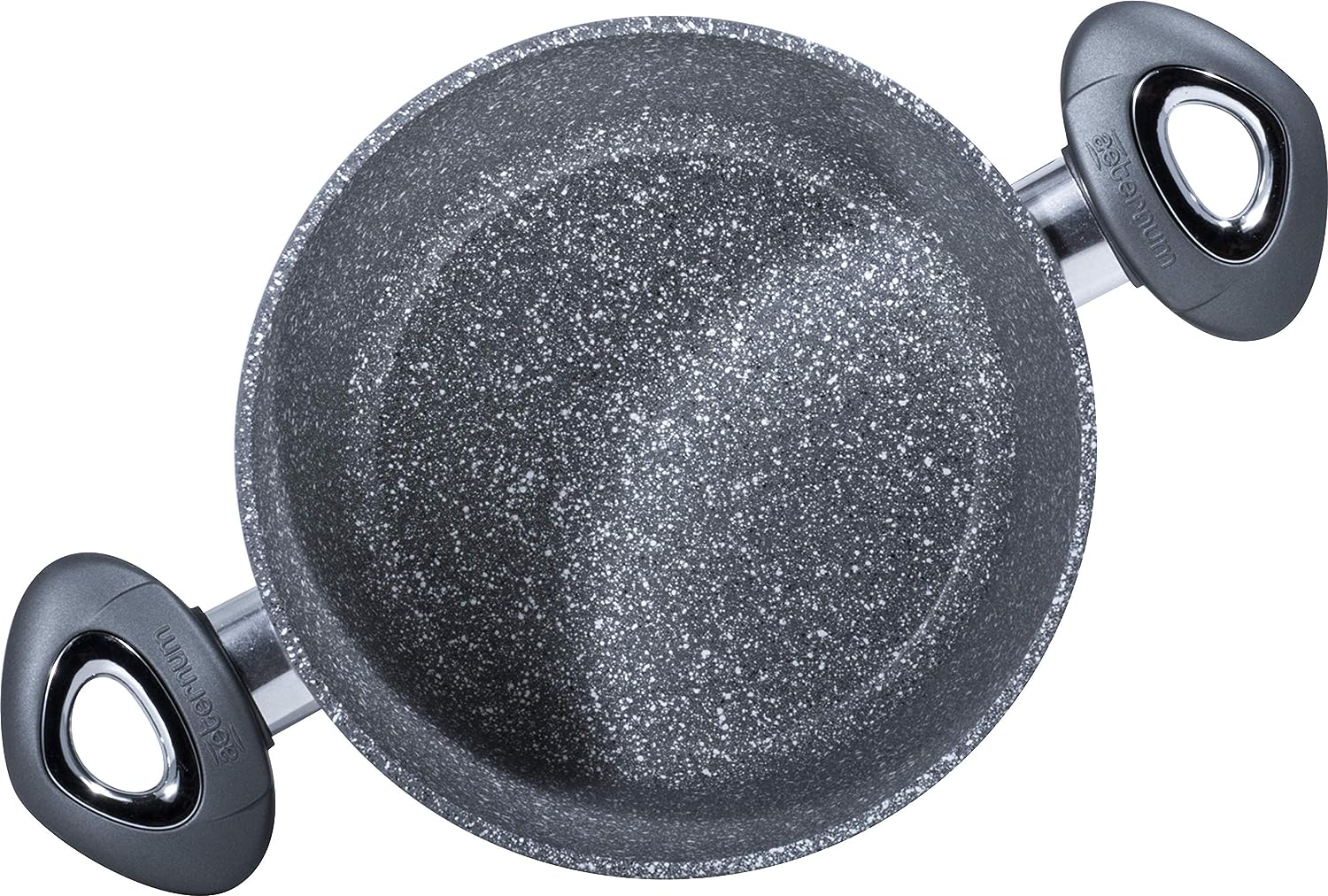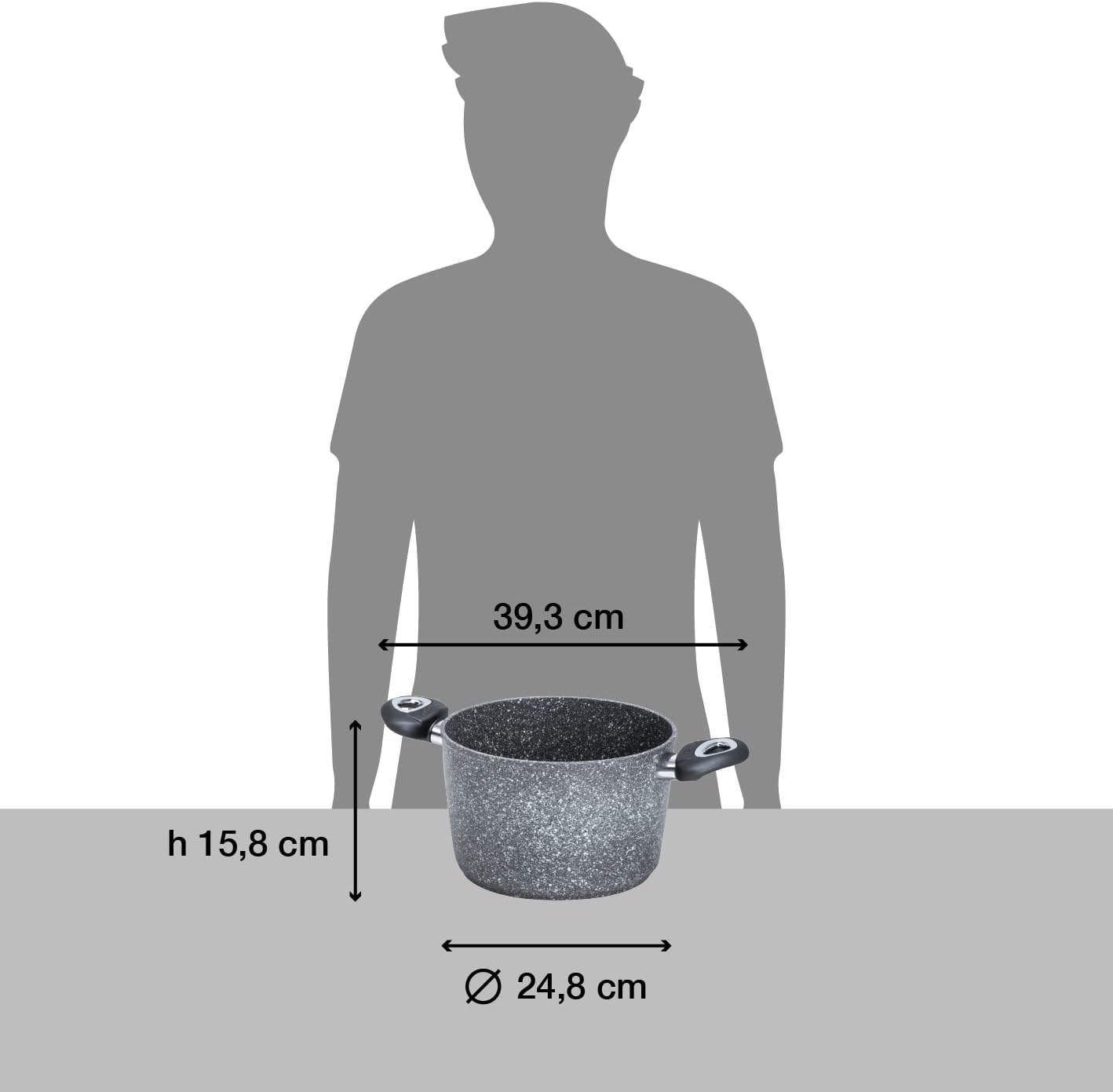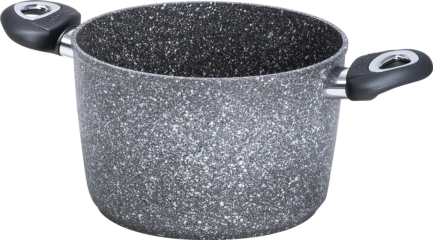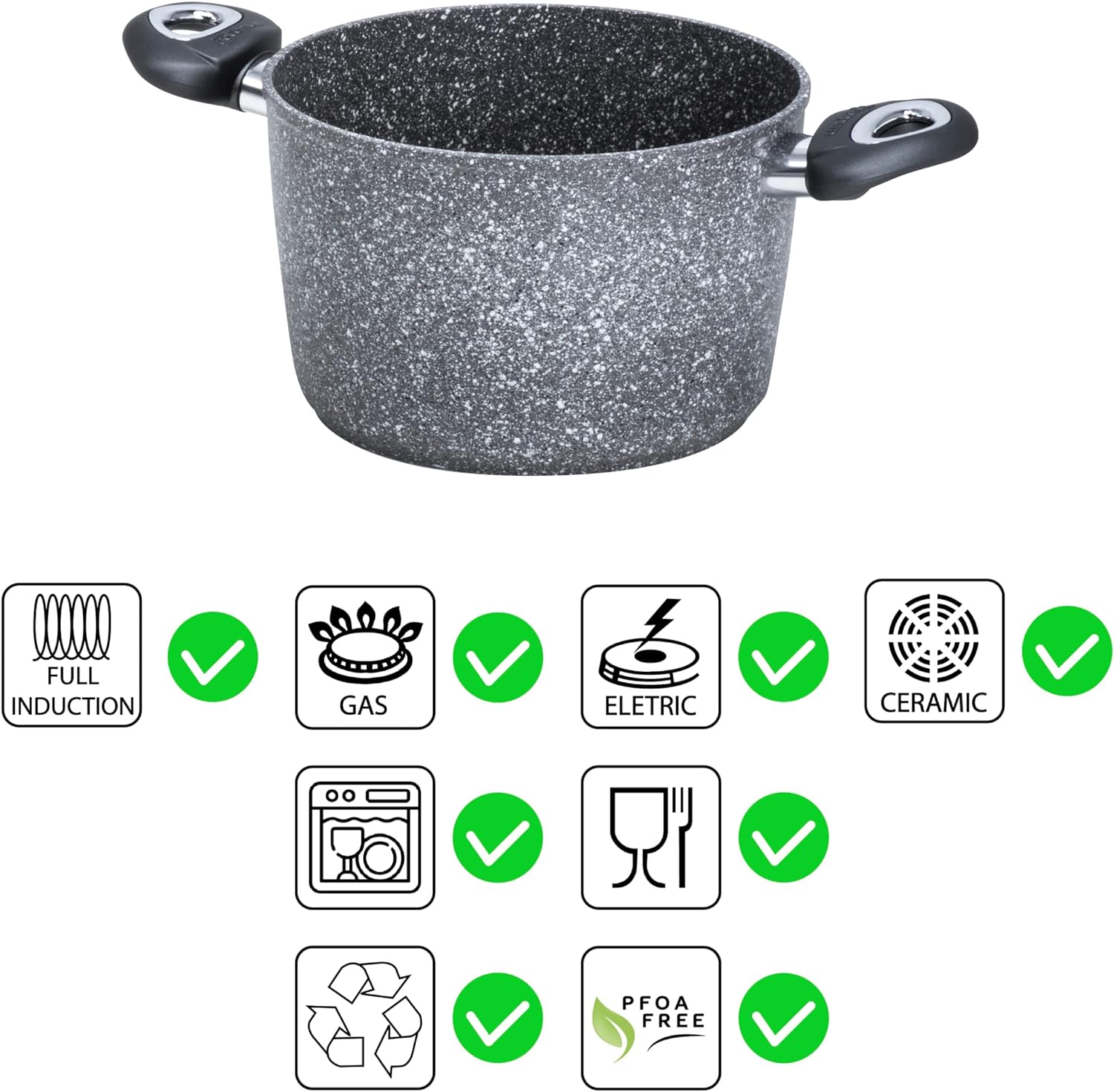 - [CARATTERISTICHE TECNICHE]: Realizzate con un corpo in alluminio ad elevato spessore che garantisce performace di cottura eccellenti; Il rivestimento antiaderente è particolarmente resistente e assicura una lunga durata; la presenza di microparticelle di pietra permette una cottura nauturale, sana e priva di olii e grassi aggiunti; Grazie al manigliame ergonomico in bachelite con finitura soft, l'utilizzo risulta pratico e la presa salda e sicura