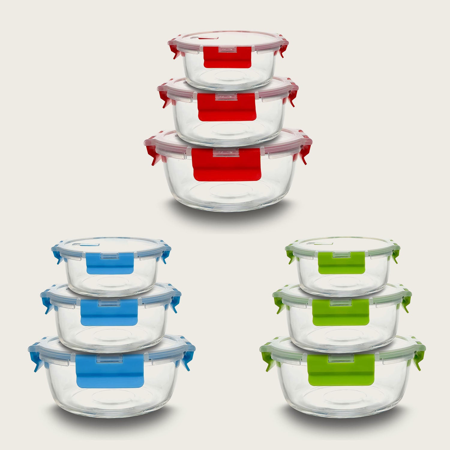 Il set è composto da 3 ciotole di dimensioni diverse con coperchio ermetico e sistema salva freschezza. Il set è disponibile in tre varianti di colore: blu, verde, rosso.