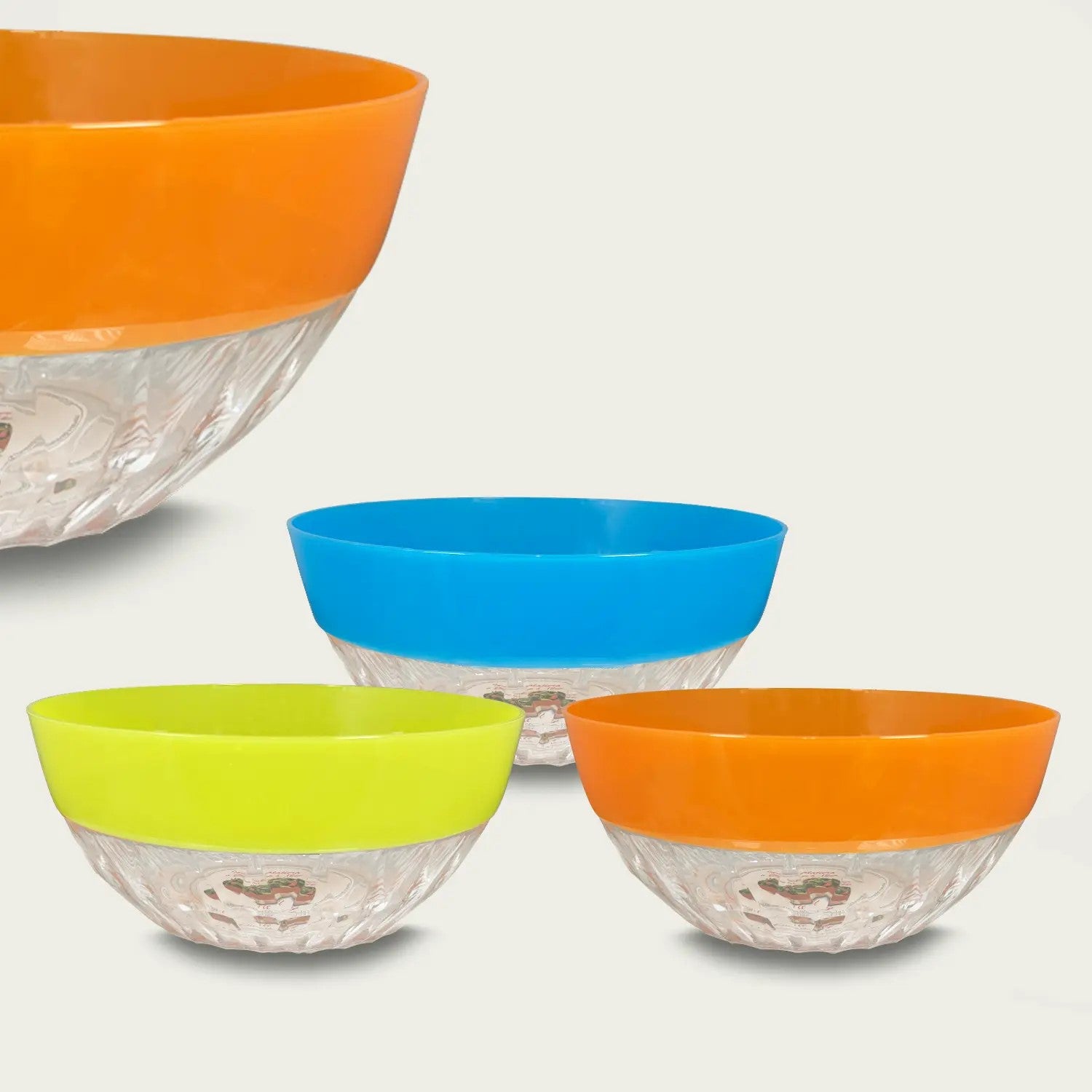Set composto da 3 ciotole in colori differenti 1 azzurra, 1 arancione e 1 lime