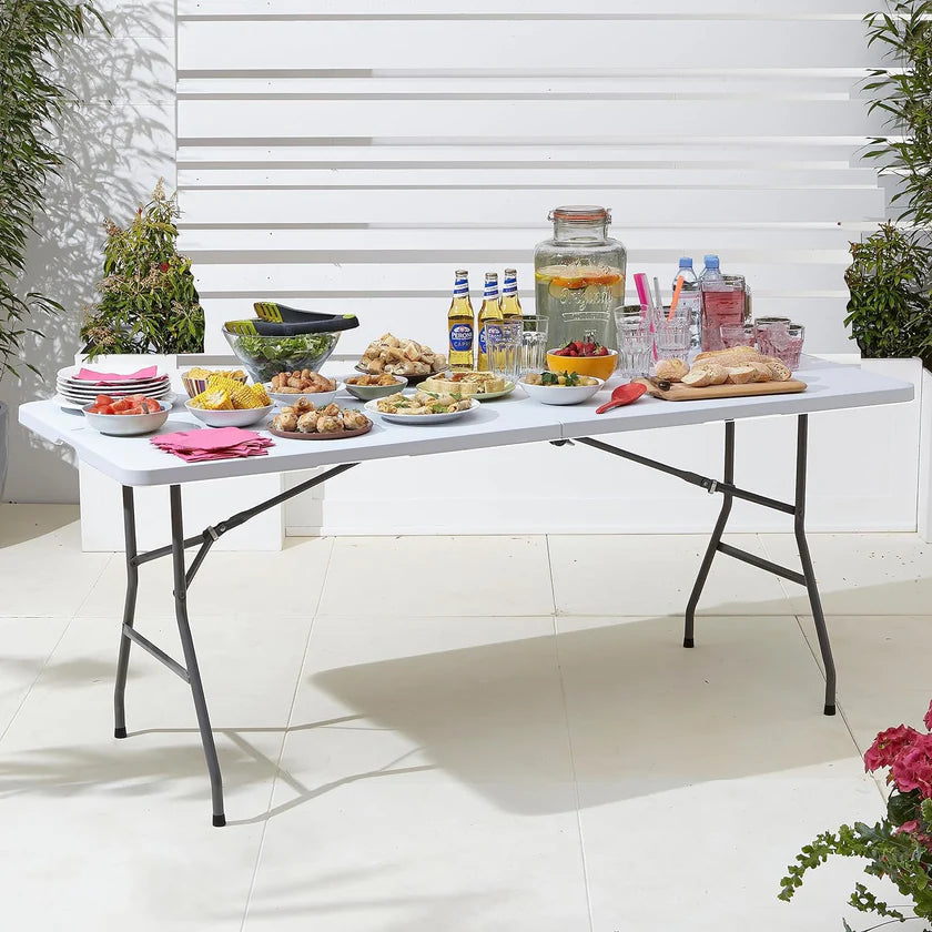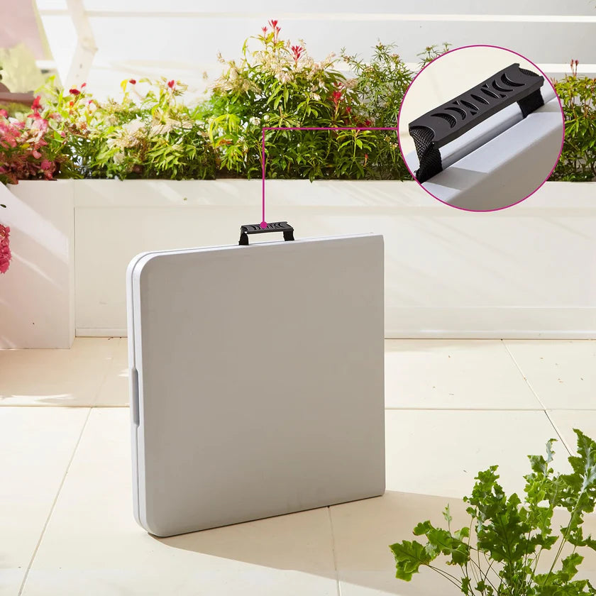 Il Tavolo Richiudibile a Valigia è la soluzione ideale per chi cerca un tavolo pratico, resistente e facile da trasportare. Realizzato in plastica polipropilene (PP) durevole e resistente agli agenti atmosferici, è perfetto per giardini, terrazzi, picnic, campeggio, fiere, mercatini e feste all’aperto. Il design pieghevole a valigia lo rende compatto e facilmente riponibile, offrendo massima praticità in ogni occasione.