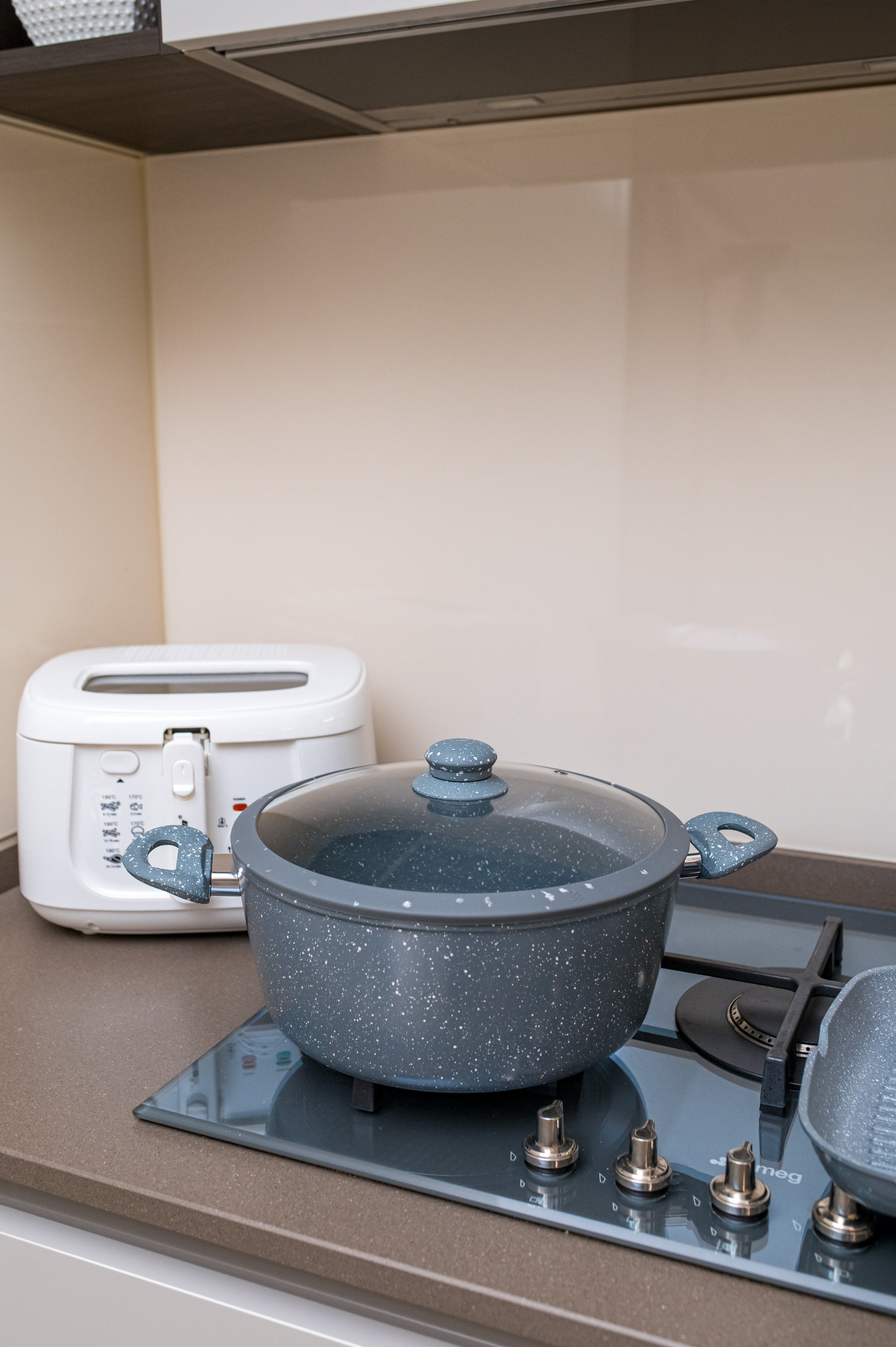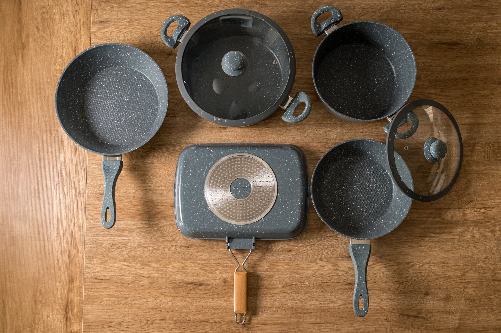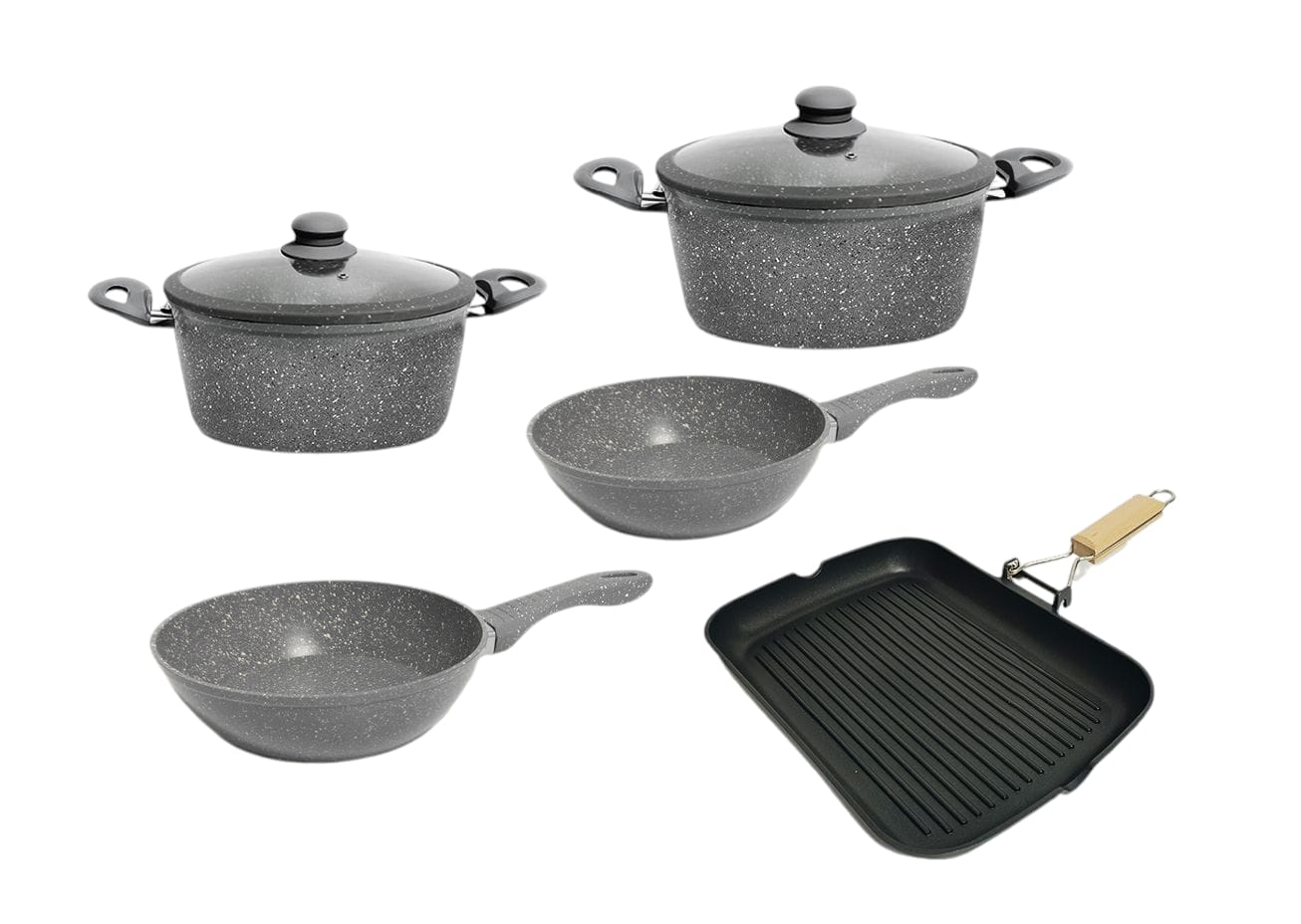 Il rivestimento in pietra di questo set migliora la distribuzione del calore, permettendo una cottura più sana e riducendo la necessità di olio o grassi aggiuntivi. Grazie alla sua versatilità, questo set è ideale per cucinare una vasta gamma di piatti in modo efficiente e uniforme.