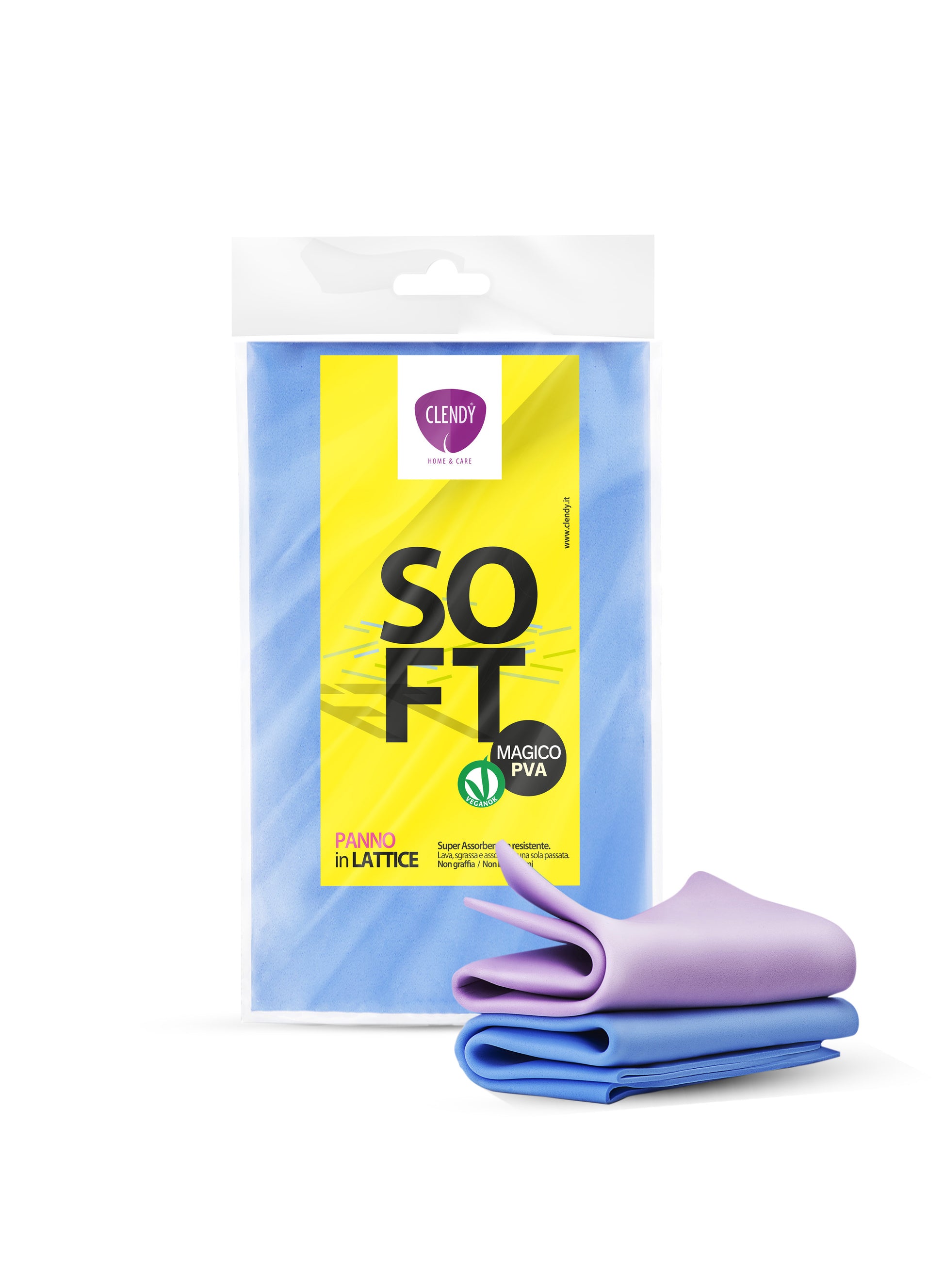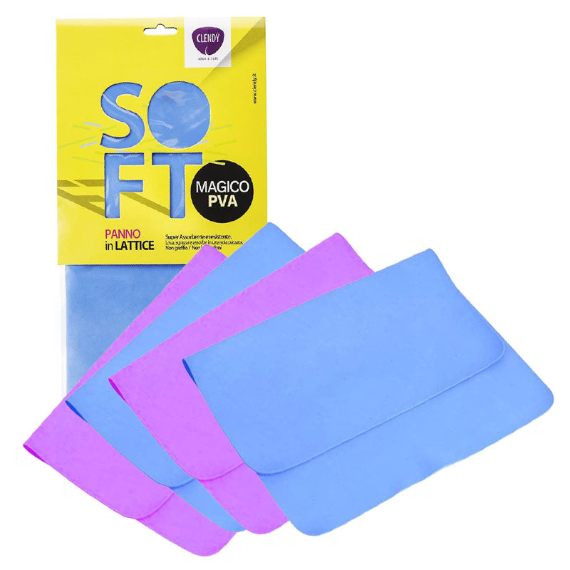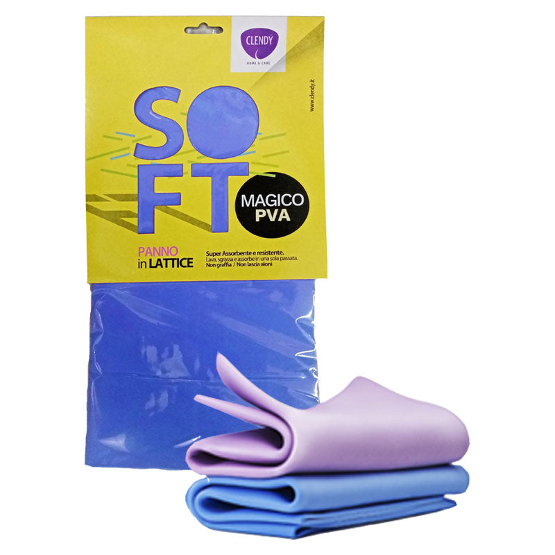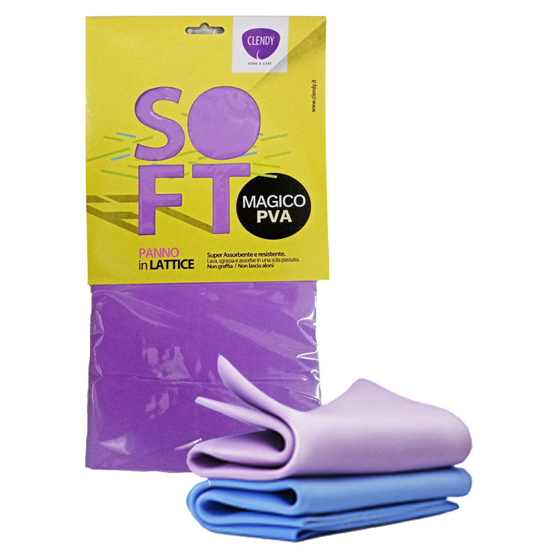 Il Panno Magico Clendy Soft è realizzato in PVA, pulisce a fondo e velocemente tutte le superfici lavabili: inox, laccati, piani cottura, marmo.