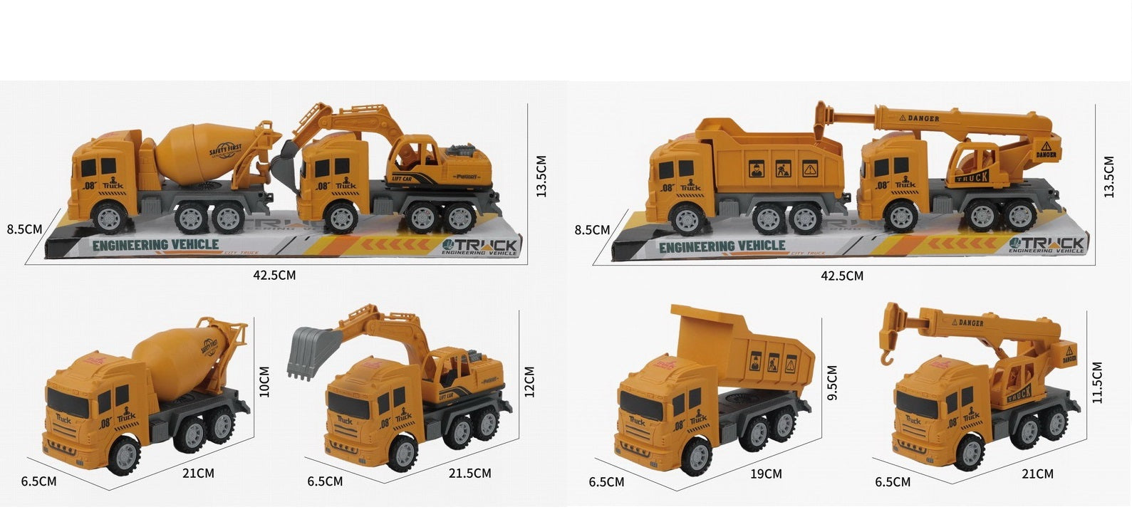 Grazie al meccanismo a frizione, i veicoli si muovono facilmente: basta tirarli indietro e rilasciarli per farli sfrecciare in avanti come veri mezzi da cantiere! Un modo divertente e sicuro per imitare il mondo dei grandi, imparando attraverso il gioco.