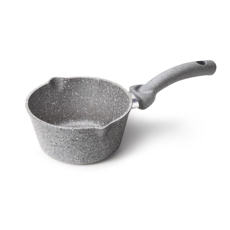 CUORE DI PIETRA E’ una linea completa di padelle in alluminio forgiato ad alto spessore con rivestimento interno antiaderente AM MINERAL STONE; uno speciale rivestimento a effetto pietra dotato di micro particelle minerali naturali, rinforzato con titanio, per esaltare il sapore naturale dei cibi cucinando senza olio ne grassi. Il corpo in alluminio puro e il fondo rettificato antiscivolo garantiscono eccellenti prestazioni su tutte le fonti di calore, con una perfetta diffusione del calore e una migliore cottura dei cibi rendendo una padella Cuore di Pietra una prezioso strumento in cucina. Gli eleganti manici ergonomici soft touch con tampografia in tinta con la padella, le forme arrotondate contraddistinguono la linea con un design inconfondibile.
