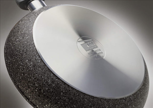 Il corpo in alluminio puro e il fondo rettificato antiscivolo garantiscono eccellenti prestazioni su tutte le fonti di calore, con una perfetta diffusione del calore e una migliore cottura dei cibi rendendo una padella Cuore di Pietra una prezioso strumento in cucina.