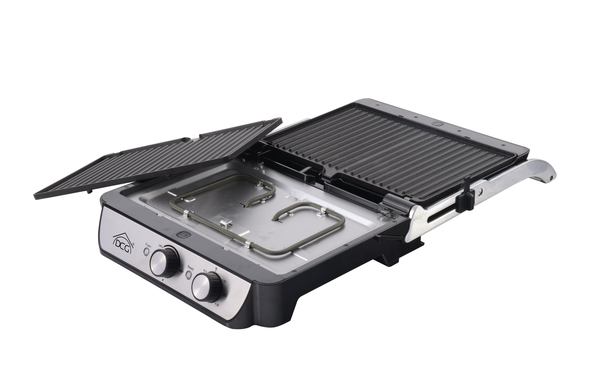 timer and thermostat, 180 degree opening, drip tray for collecting oil
