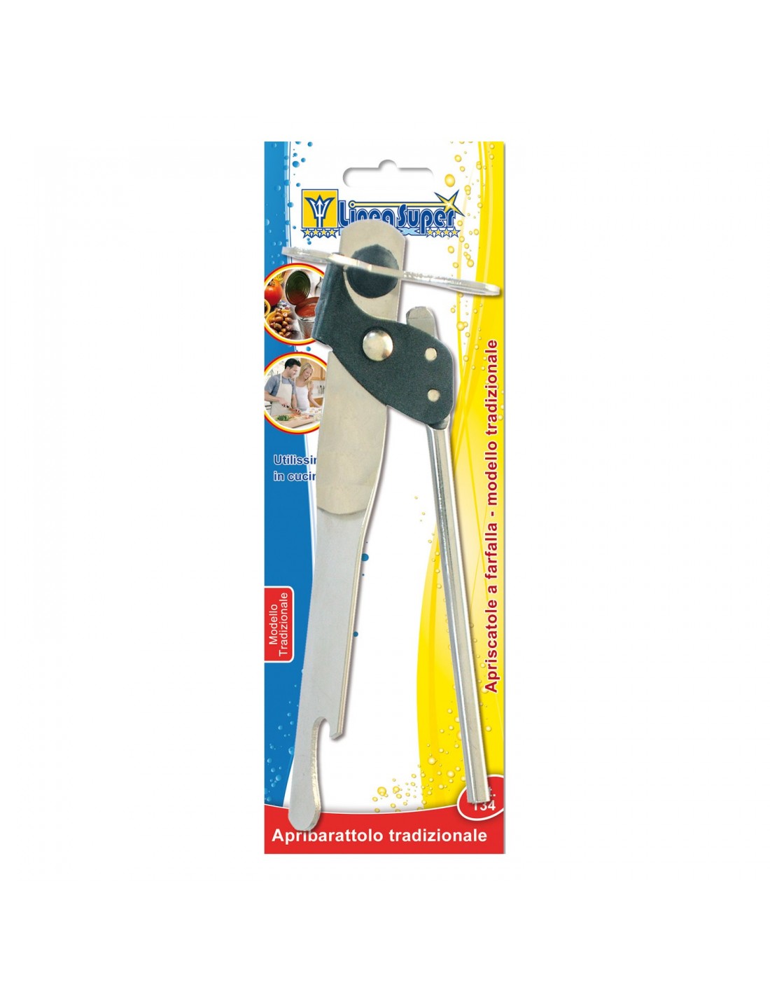 Apriscatole, apribarattolo modello tradizionale a farfalla in acciaio Inox. Linea Super.
