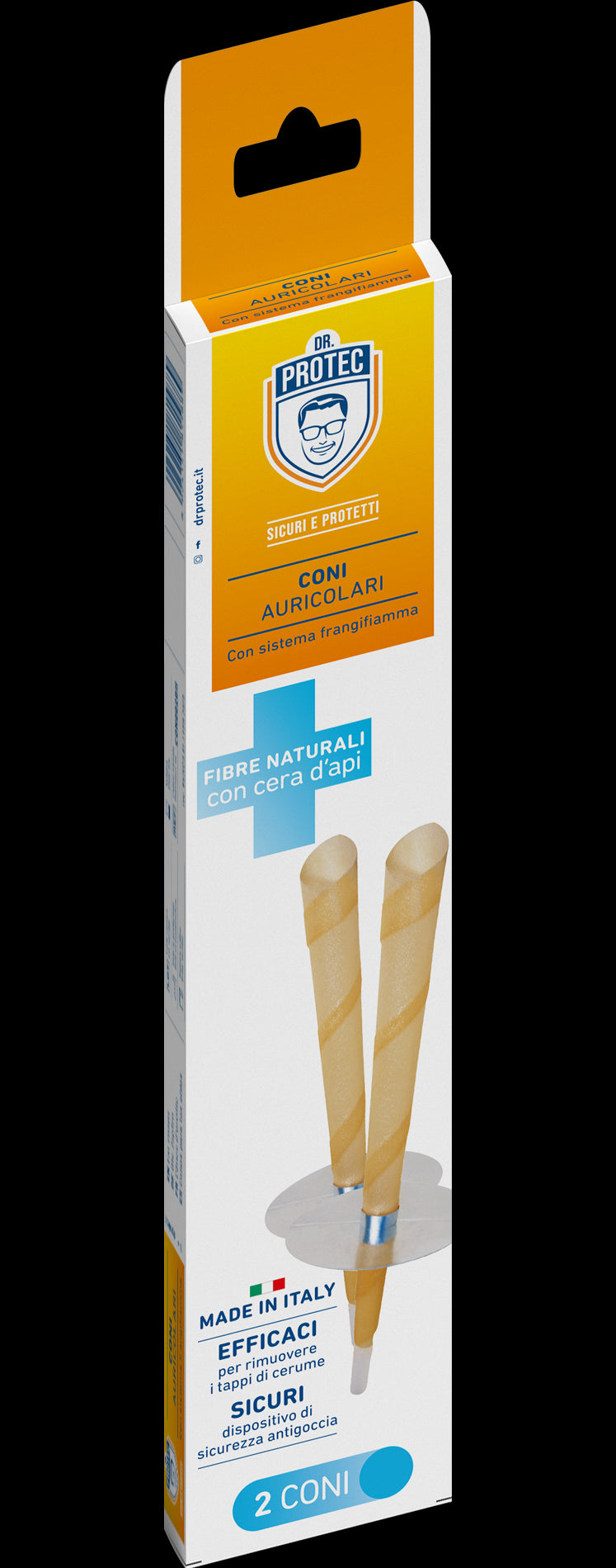 Dr. Protec Coni auricolari con sistema frangi fiamma, indicati per la rimozione dei tappi di cerume. Dispositivi fabbricati interamente a mano. Se utilizzati con regolarità, favoriscono l’eliminazione del cerume in eccesso procurando una gradevole sensazione di rilassante benessere. Dispositivi monouso.