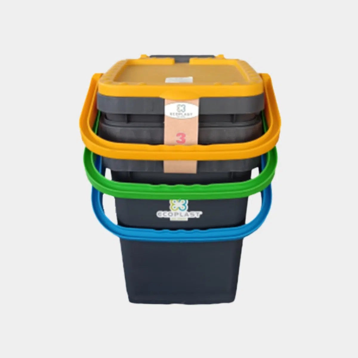 Pattumiera differenziata certificata Plastica Seconda Vita e realizzata con almeno il 70% di plastica riciclata. Dotata di un’unica apertura a libro per facilitare il conferimento dei rifiuti. Resiste agli urti e alle movimentazioni frequenti e alle alte e basse temperature, è flessibile e indeformabile, ideale per ambienti interni ed esterni, grazie anche al manico anti-randagismo.
