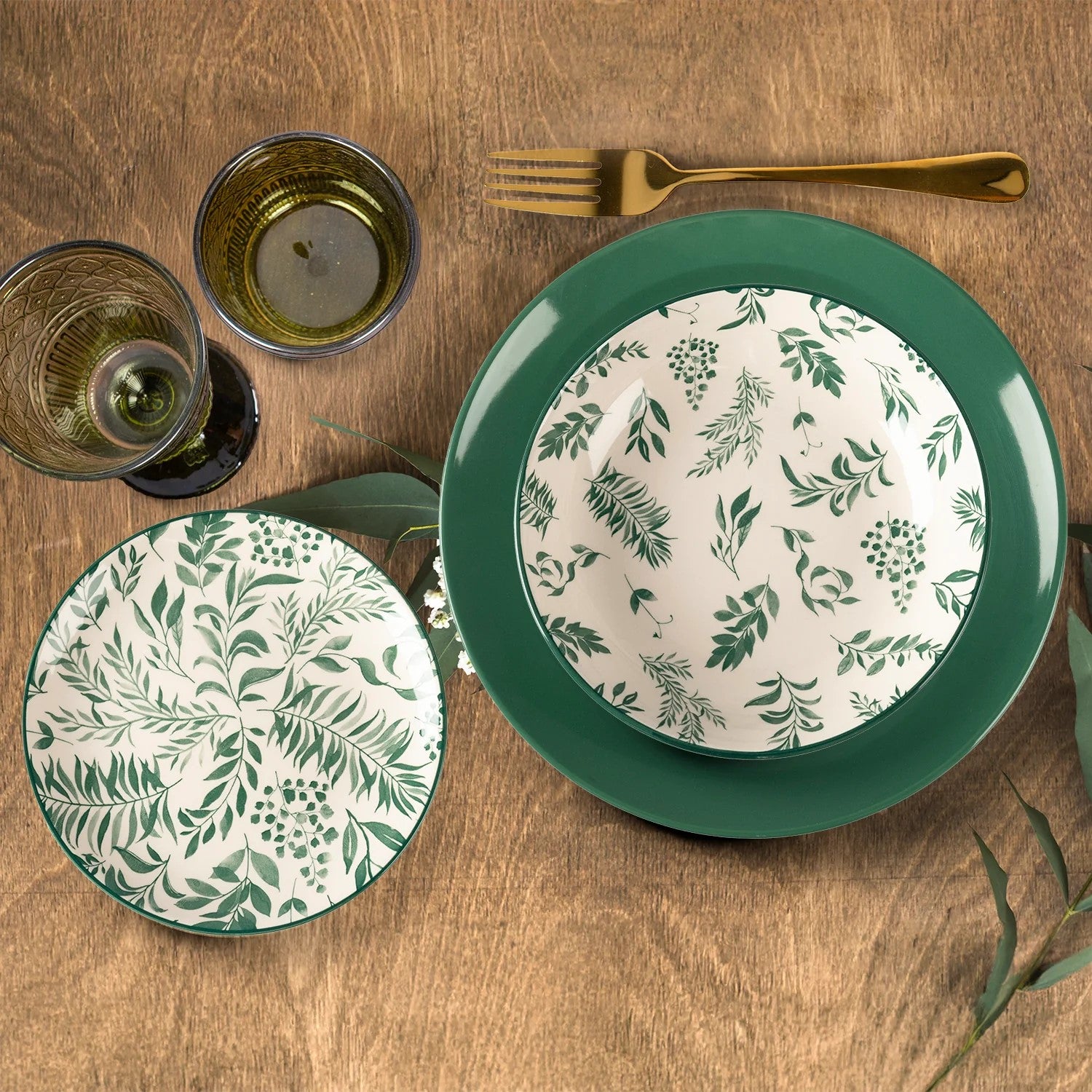 Porta freschezza e stile naturale alla tua tavola con il servizio di piatti Leaves Green. Con un elegante motivo decorativo ispirato alla natura, questo set in resistente stoneware è perfetto per cene quotidiane e occasioni speciali, offrendo un mix ideale di funzionalità e design raffinato.