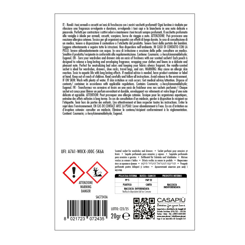 IRGE SACCHETTO PROFUMATO VANIGLIA CON GANCIO