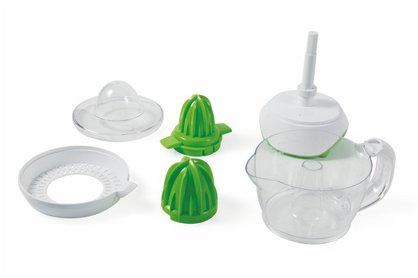 Dotato di doppio cono di spremitura (piccolo e grande), si adatta a diversi tipi di agrumi. La caraffa graduata da 700 ml, rimovibile, consente di dosare facilmente il succo.
