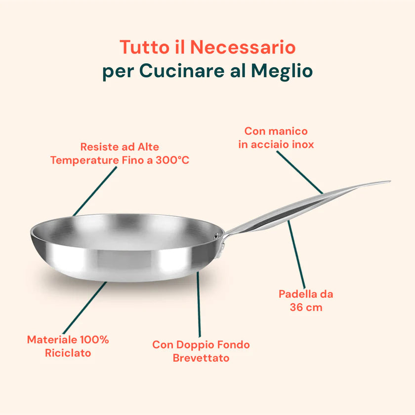Scegli la padella svasata alta in alluminio riciclato per una cucina efficiente, sicura e rispettosa dell’ambiente, con il vantaggio di avere un prodotto durevole e professionale in ogni formato di cui hai bisogno.