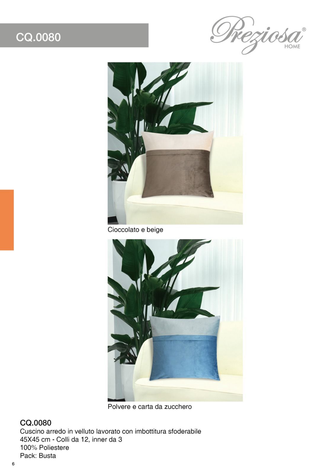 PREZIOSA CUSCINO ARREDO VELLUTO CQ0080 LAVORATO CON IMBOTTITURA SFODERABILE