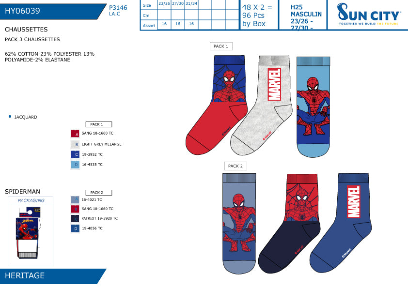 SUN CALZE 3PZ MIS.ASS. SPIDERMAN 06039