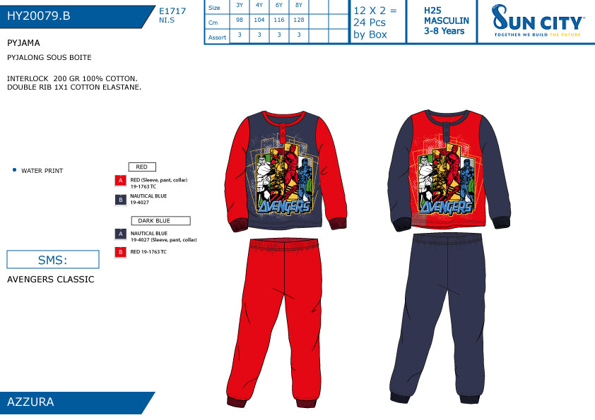 SUN PIGIAMA TG.ASS. AVENGERS IN CALDO COTONE 20079.B