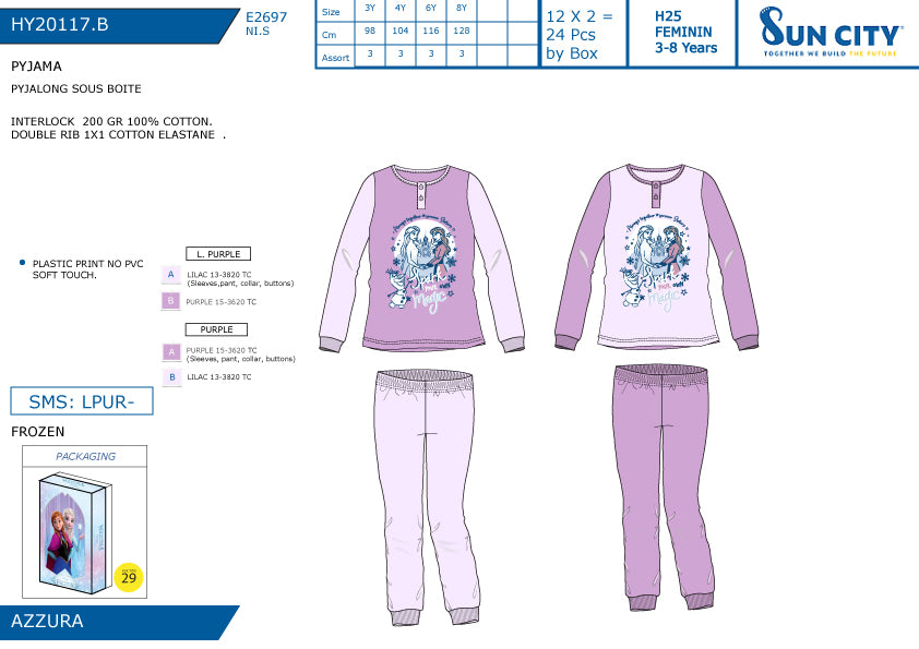 SUN PIGIAMA TG.ASS. FROZEN 20117.B IN CALDO COTONE