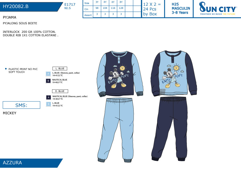 SUN PIGIAMA TG.ASS. MICKEY 20082.B IN CALDO COTONE
