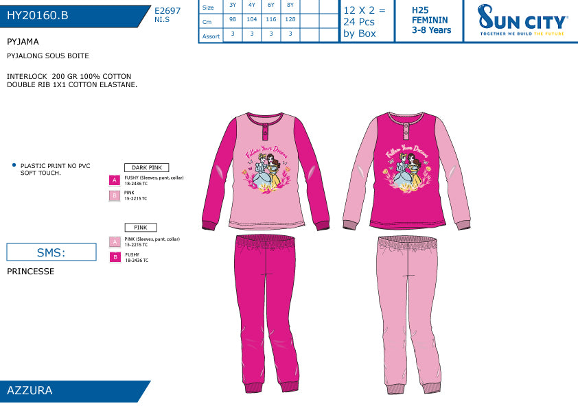 SUN PIGIAMA TG.ASS. PRINCESSE IN CALDO COTONE 20160.B