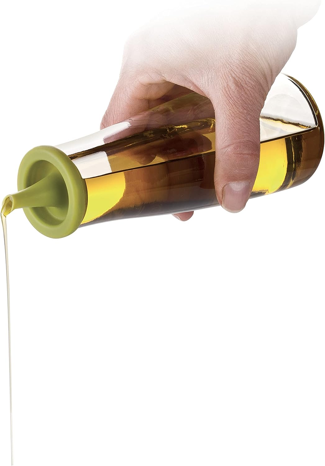 Ecco un'oliera perfetta per cucina o per la tavola informale: ha il recipiente in vetro borosilicato ed il beccuccio versatore in silicone di colore verde, per distinguerla dall'acetiera della stessa linea che ha il beccuccio bordeaux. Formato da 500 ml: scegli e coordina il contenitore con quello per l'aceto!