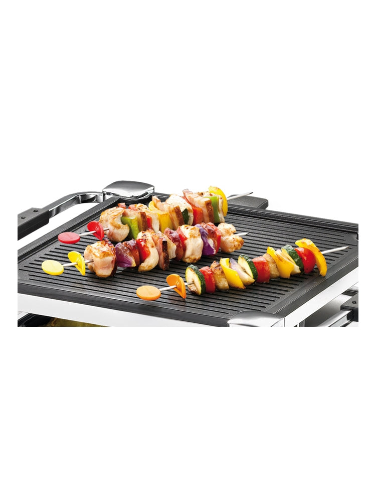 La jehlice in acciaio inox di alta qualità assicura resistenza e lunga durata, mentre il manico e il manicotto scorrevole in silicone termoresistente (fino a 230 °C) permettono di maneggiare e rimuovere gli alimenti con la massima praticità.